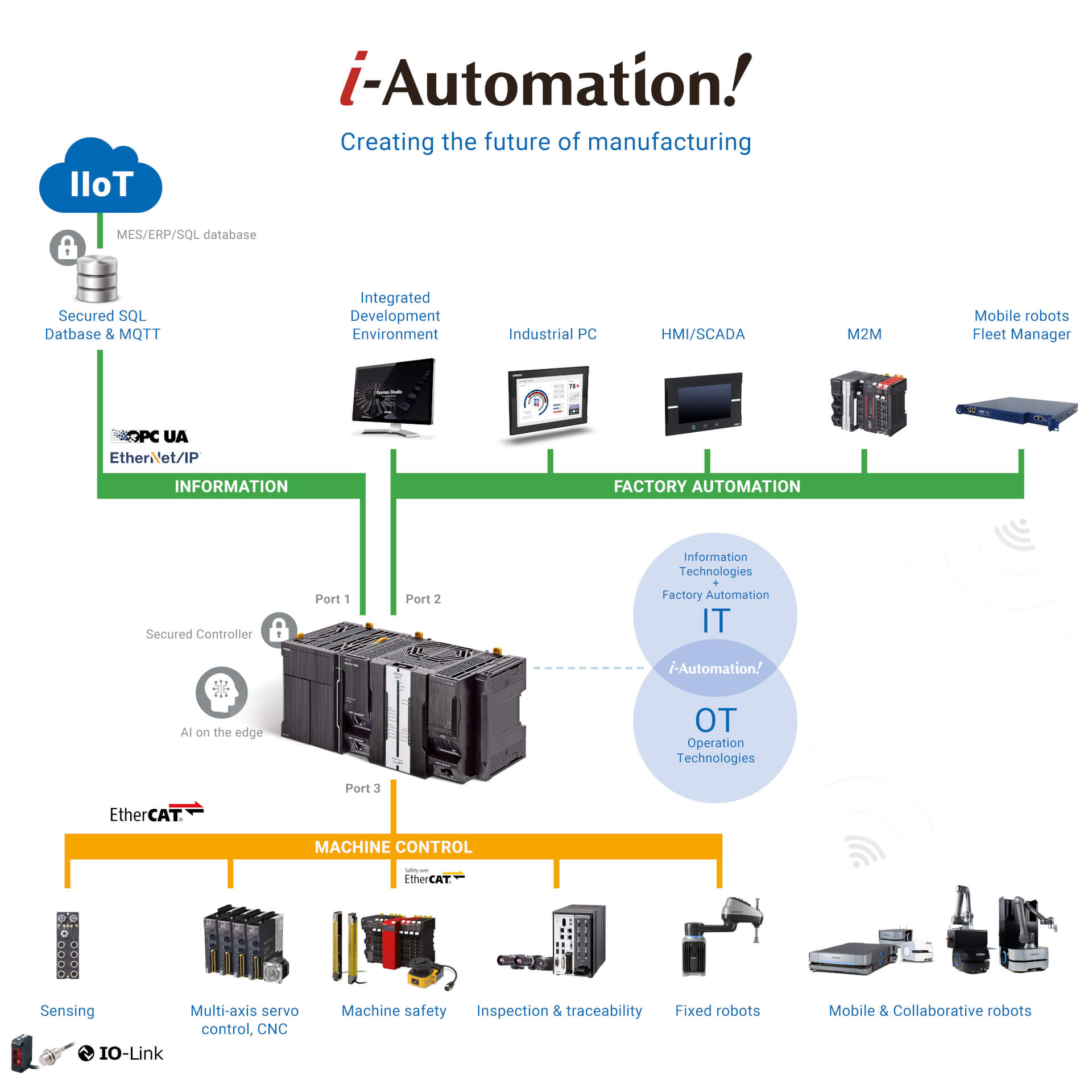 with open protocols like real-time EtherCAT for OT and EtherNet/IP for IT